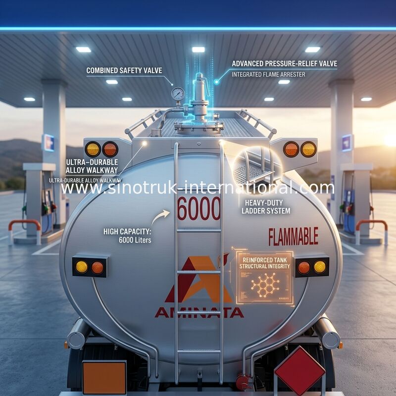 De de Olietankwagen van HOWO A7, keurt a7-w Cabinetechnologie goed, en de vooras van HF7 of van HF9, de aandrijfassen van HC16. De chassisaandrijving tyep heeft 4X2, 6X2, 6X4 en 8X4. De motormacht van 266HP, aan 420HP.